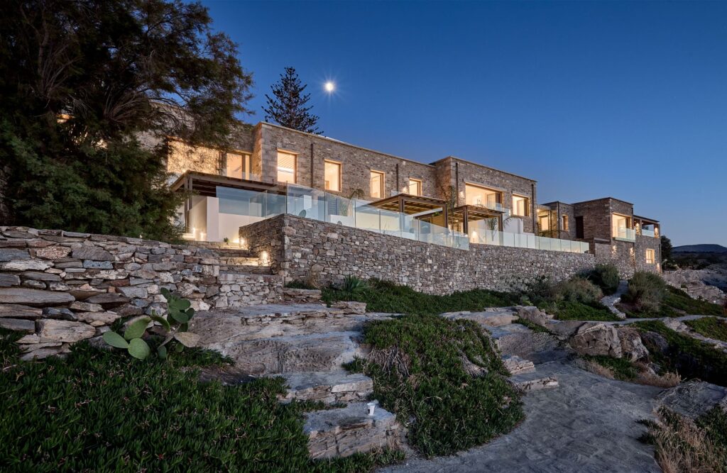 Οι νέες σουίτες, οι οποίες στεγάζονται στο πλήρως ανανεωμένο κτίριο του ιστορικού ΞΕΝΙΑ, συνιστούν μια σύγχρονη τουριστική μονάδα υψηλής αισθητικής και λειτουργικότητας. Η αρχιτεκτονική του προσέγγιση είναι απόλυτα εναρμονισμένη με το φυσικό και οικιστικό περιβάλλον της Πάρου, ενώ οι σουίτες διακρίνονται για την ποιότητα των υλικών και τον πρωτότυπο σχεδιασμό τους, αποτυπώνοντας τη δέσμευση του Ομίλου σε έργα βιώσιμης και φιλικής προς το περιβάλλον κατασκευής.
